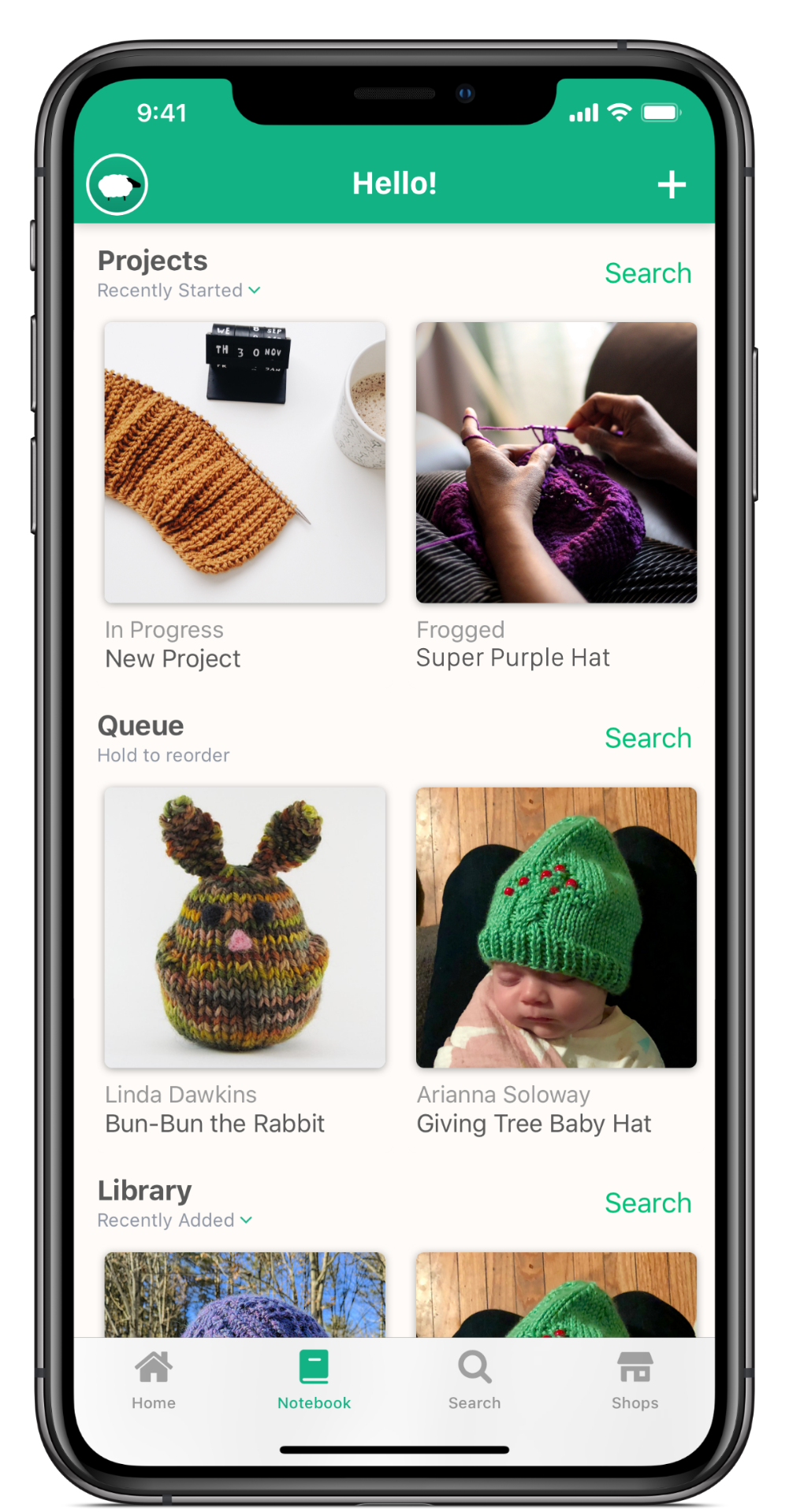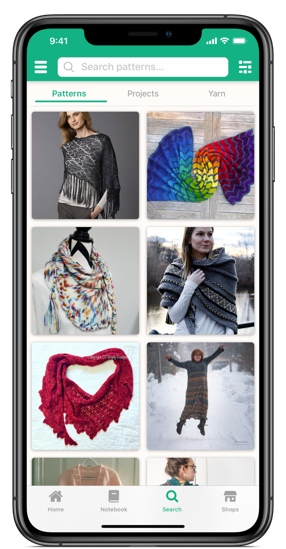 Search for Patterns, Projects, Yarn, and Shops. Add them to your queue and start a new project right from the app. |